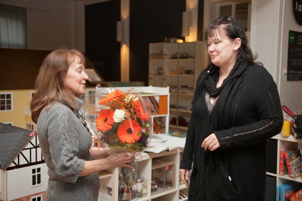 Torstaina vietettiin Vihdin Minilandissa uuden kirjani "Rauhankadun talo" julkaisujuhlia. Kiitos mukavien läsnäolijoiden tunnelma oli lämmin ja herkut maistuvia. Oranssin kukkakimpun sain kustantajalta ja valkoisen syklaamin Kauniaisten nukkekotikerholaisilta. Kiitos kaikille mukana olleille!